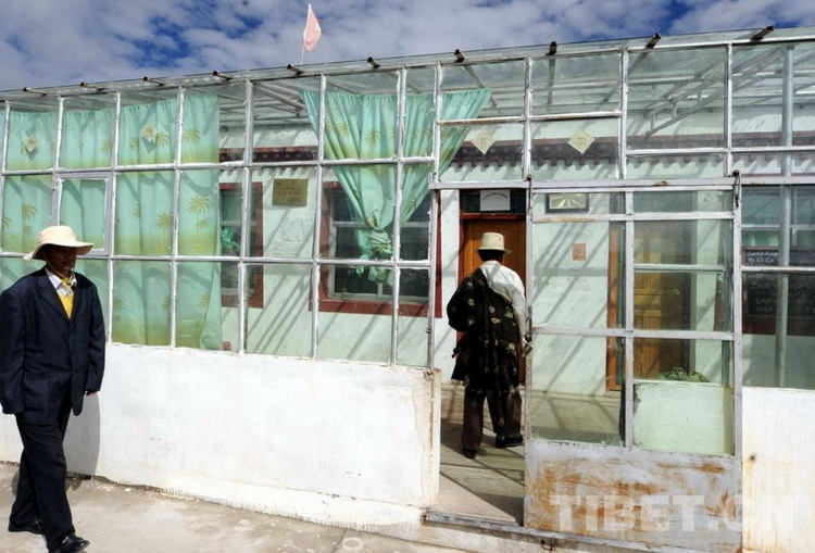 這是申扎縣申扎鎮三村的村政府太陽能采暖房,由中信集團援建(唐召明2009年8月9日攝)