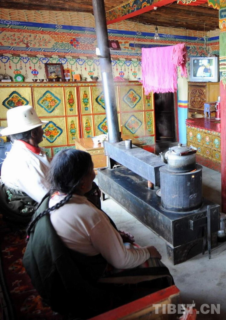 這是申扎縣申扎鎮三村牧民家庭利用太陽能發電來看電視(唐召明2009年攝)