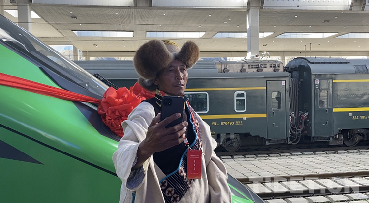 “修建拉林鐵路時(shí),要占用我們的地,我們都特別支持。鐵路施工上,有什么事情,我們都很積極響應(yīng)。現(xiàn)在,拉林鐵路終于建成通車了,我們都很高興。居委會(huì)里,許多人都知道我要來(lái)迎接車子,都讓我拍點(diǎn)視頻、照片,回去給他們看看。”