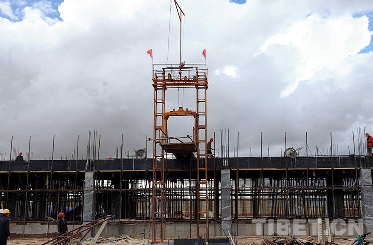 這是中國石化所援建的班戈縣小學大樓正在施工(唐召明2009年攝)