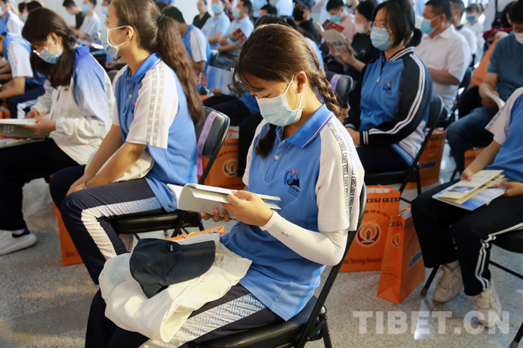 圖為6月29日的開幕式上,來自北京西藏中學的學生翻閱展覽資訊 攝影:楊月云