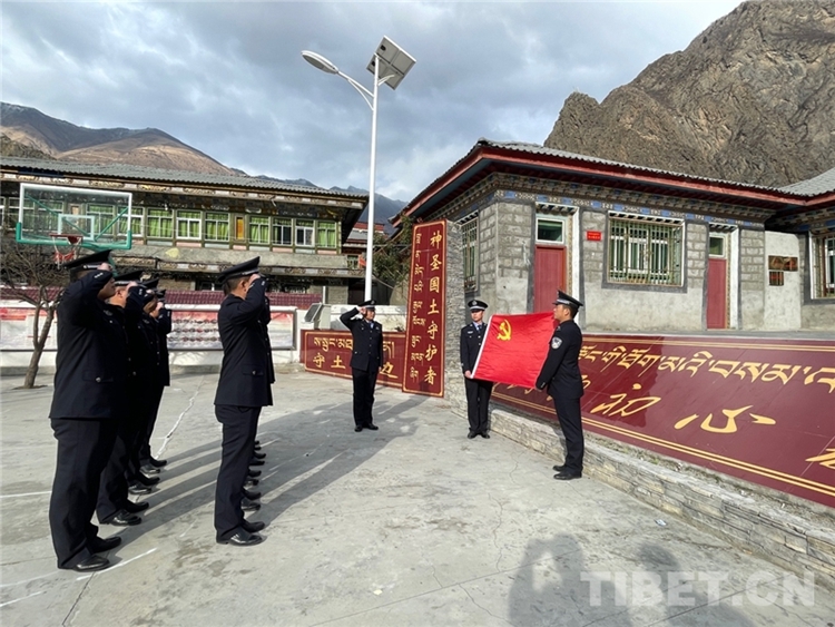 圖為林芝市金東邊境派出所民警正在參觀國(guó)門講習(xí)所展廳