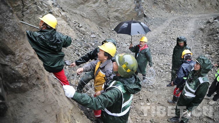 圖為該支隊官兵正對山體巖石進行破碎