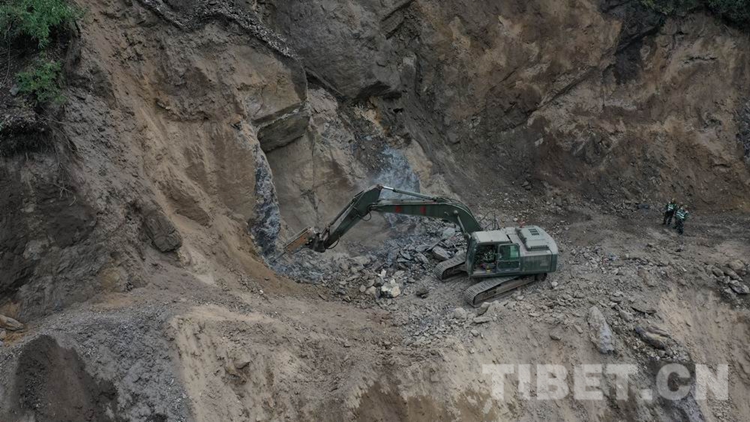 圖為該支隊官兵采取“雙向掘進”戰法全力搶修便道