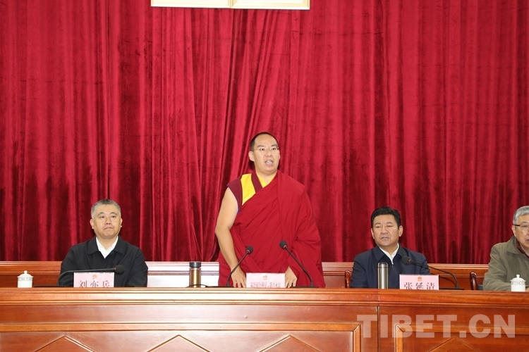 全國政協常委、中國佛教協會副會長、中國佛教協會西藏分會會長、援助西藏發展基金會理事長班禪額爾德尼?確吉杰布參加活動啟動儀式并作講話。