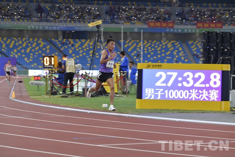 在田徑項目男子10000米決賽中,西藏自治區選手多布杰以28分35秒24的成績力壓群雄,勇奪冠軍,為西藏奪得本屆全運會第二金,蟬聯兩屆全運會該項目的冠軍。