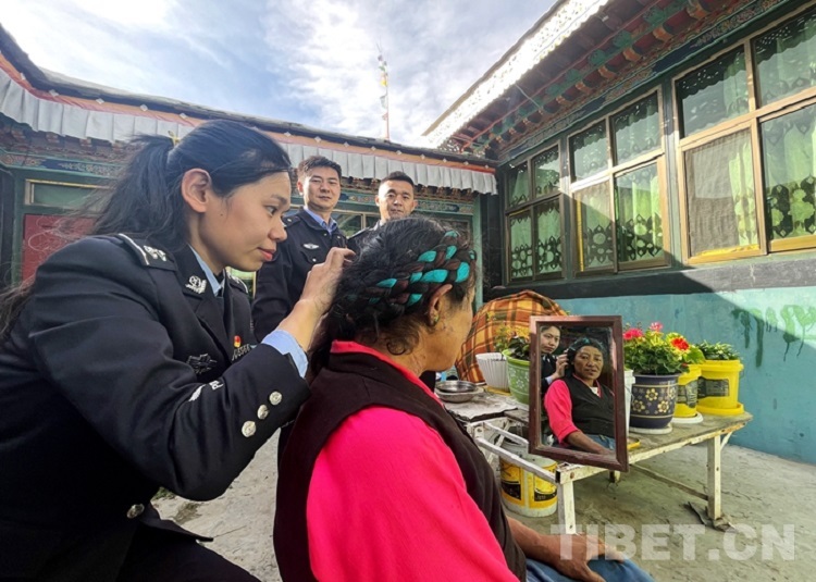在老人家中,民警們與老人聊家常,詳細詢問老人身體、生活狀況,為老人梳理了頭發。老人顯得格外開心,她說:“年輕時,我可愛美了,特別喜歡捯飭頭發。現在年齡大了,沒以前那么精神了。還好有你們幫忙,讓我又美上了。”