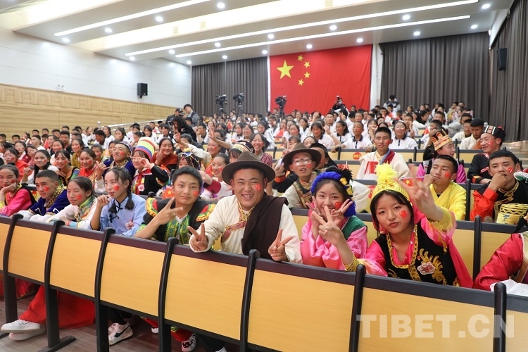 活動中,同學們用藏漢雙語傾情朗誦《石榴籽心連心,民族團結一家親》,深情表達了對偉大祖國深沉熱烈的愛、對維護民族團結堅定的信心和決心。山南邊境管理支隊浪卡子邊境管理大隊教導員索朗達杰同志通過講述邊防部隊愛邊守邊、加強民族團結的故事,將無數邊防戰士守衛國境線、捍衛國家領土、維護民族團結的時代縮影呈現給大家;舞蹈《洗衣歌》生動反映了軍民魚水深情;原雙湖縣中心小學教師、西藏自治區民族團結先進代表曹小花老師分享了自己在那曲雙湖縣堅守12年基礎教育,踐行民族團結的感人經歷,在坐的師生深受感動;索朗頓珠同志講述了卓嘎、央宗姐妹作為“神圣國土的守護者”堅守玉麥三人鄉,踐行“國是中國 家是玉麥”的感人故事!在活動中,56名同學身著各民族服裝伴著手語飽含深情地演繹了《國家》,用指尖唱出對家的依賴、國的熱愛;朗誦《請黨放心,強國有我》鏗鏘有力的展現了新一代西藏團員青年在黨的領導下,加強民族團結、建設美麗西藏的青春誓言!最后,活動在全體團員青年重溫入團誓詞中結束。