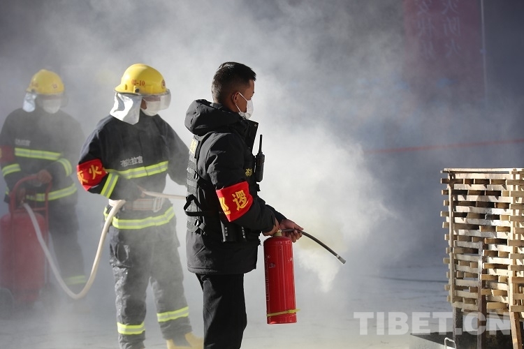 圖為布達拉宮管理處義務消防隊消防實操演練 攝影:王佳豪