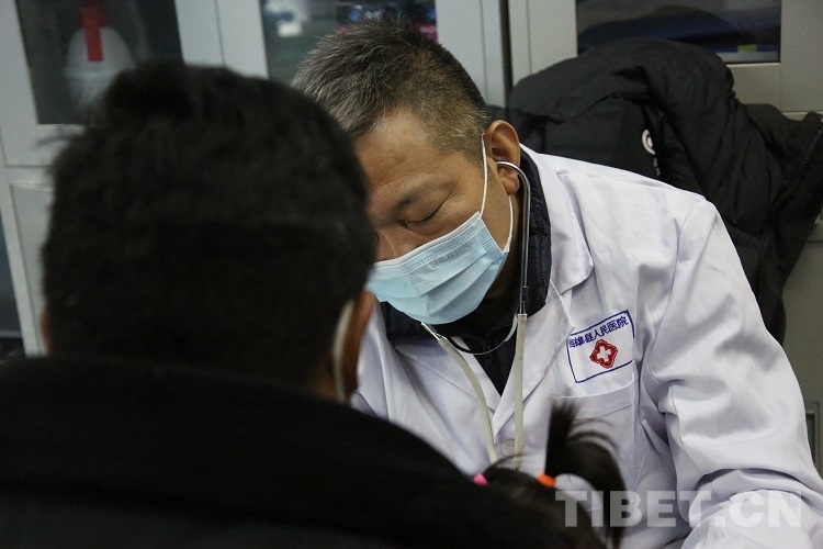 圖為拉薩市本地醫生協助進行樣品采集 攝影:王佳豪