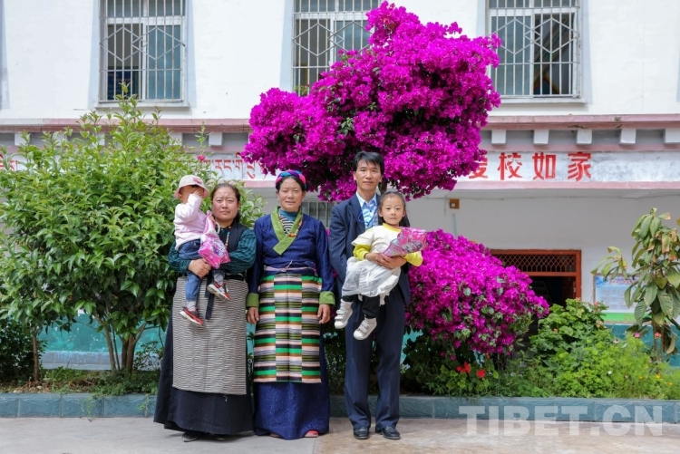 圖為云南小伙雷云春與藏族妻子四朗旺姆一家合影 攝影:周婷婷 蔡生萬