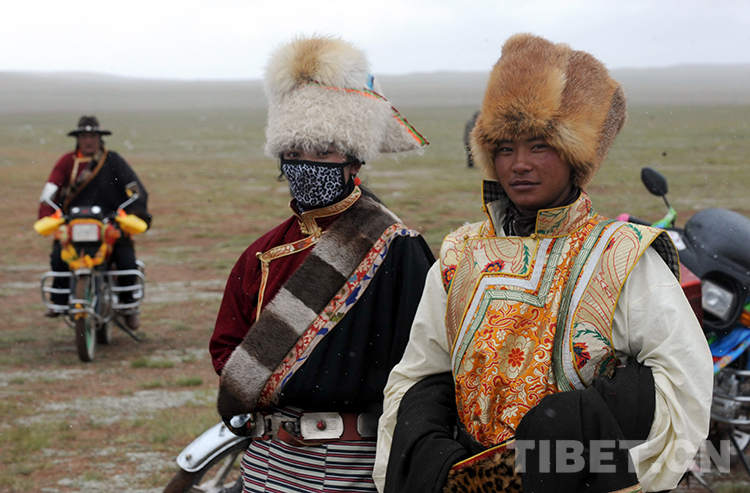 這是兩位青年牧民著盛裝參加雙湖縣的“撤區建縣”慶祝活動(唐召明2013年7月26日攝)