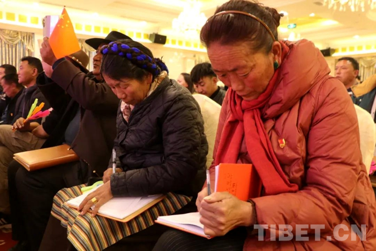圖為農牧民群眾在認真做筆記