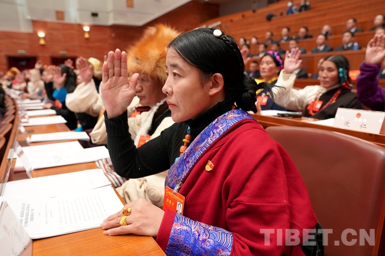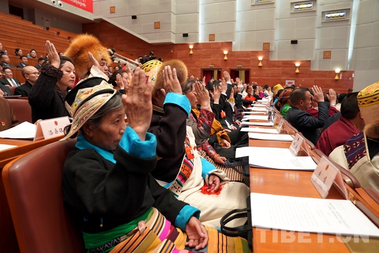 完成各項議程后,洛桑江村作講話。他說,這是一次高舉旗幟、維護核心的大會,是一次統一思想、凝聚共識、全面貫徹落實自治區第十次黨代會精神的大會,是一次民主、團結、勝利的大會,必將團結動員全區各族人民在全面建設社會主義現代化新西藏偉大進程中展現新作為、實現新發展。