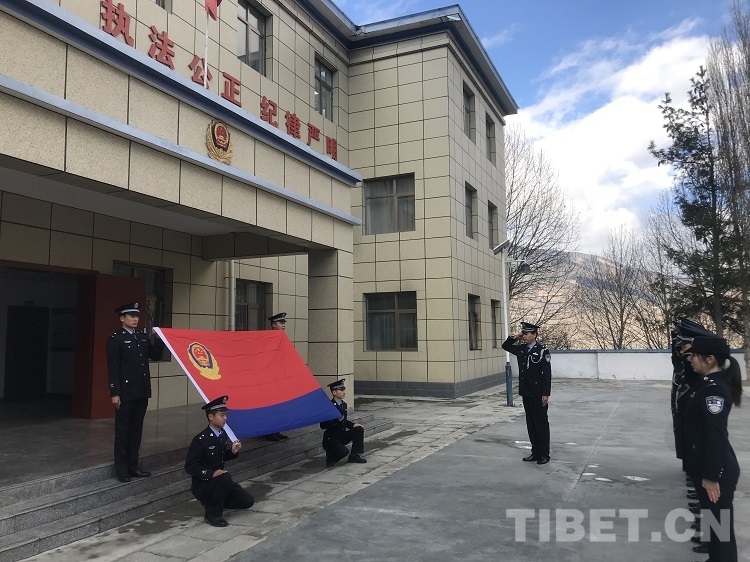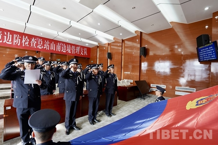 圖為山南邊境管理支隊機關移民管理警察重溫入警誓詞 攝影:索朗次旺