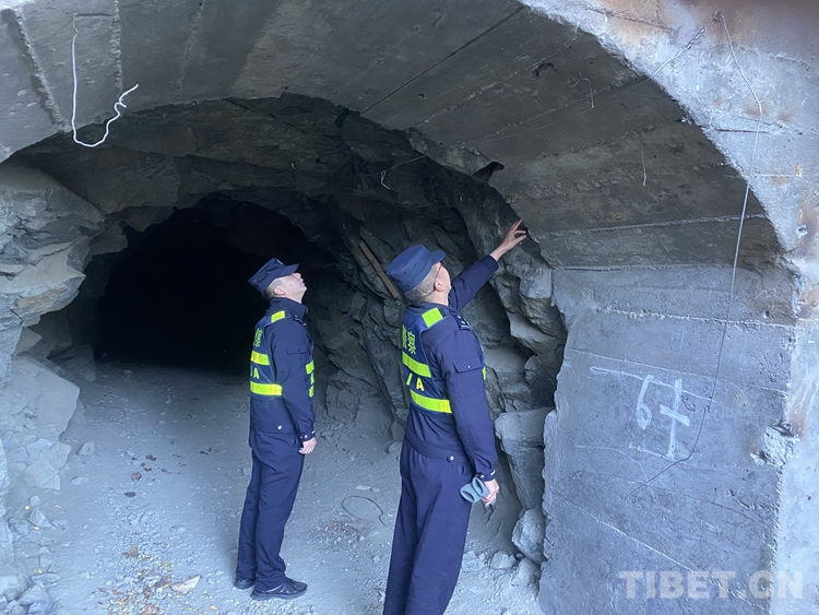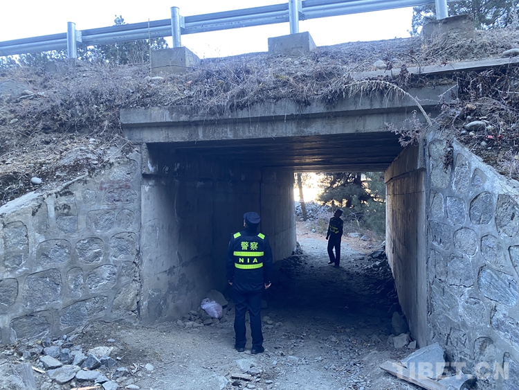 圖為林芝邊境管理支隊里龍邊境派出所民警對轄區重點路段涵洞進行安全隱患排查 攝影/吳敏
