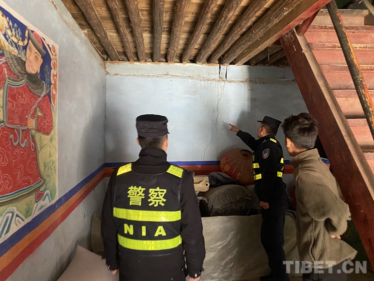 圖為林芝邊境管理支隊里龍邊境派出所民警在轄區群眾家中查看房屋受損情況 攝影/吳敏