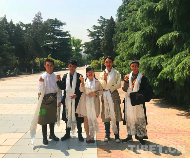 圖為趙毅(右一)與學生赴西藏調研合影