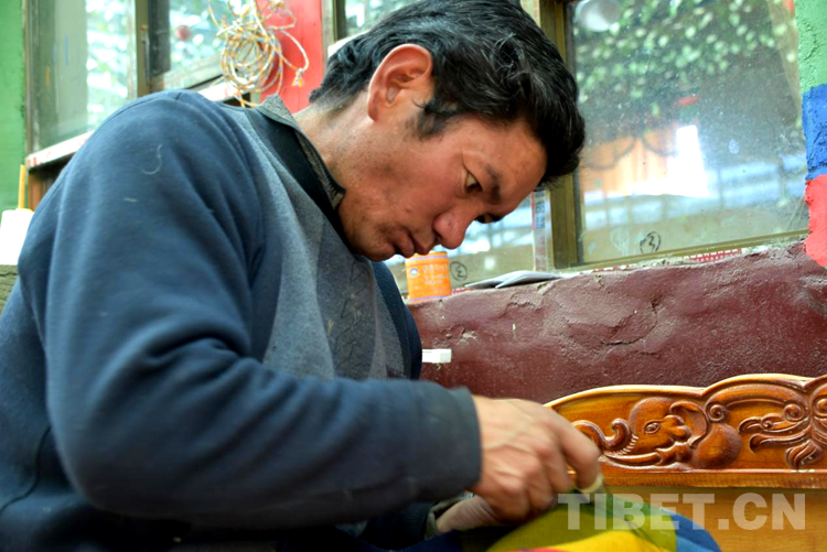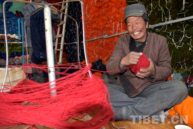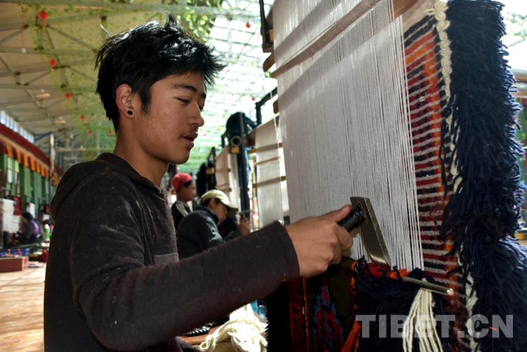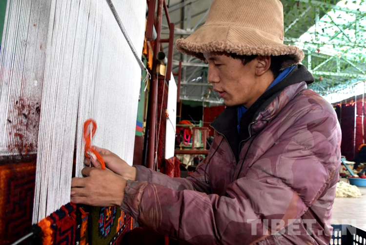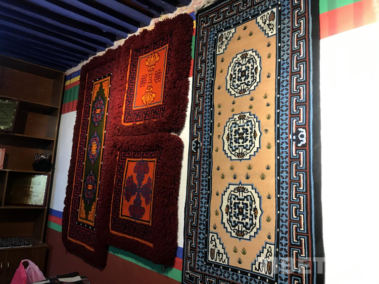 “剛到合作社每天工資160元,一個月下來就有小四千,一年收入妥妥的超3萬元。”說話間,巴頓也沒有歇下手中的活計。穿桿結扣,勤勞的雙手一直忙碌著,在合作社6年多,他已經比較熟練地掌握了卡墊織法、色彩以及紋樣。如今,卡墊接活都是以承包方式,往往供不應求,一家人住在裝修一新的藏式小院里,妻子現在也在參加合作社新員工培訓,四個孩子都進了公立學校讀書,享受了義務教育免費“三包”政策。