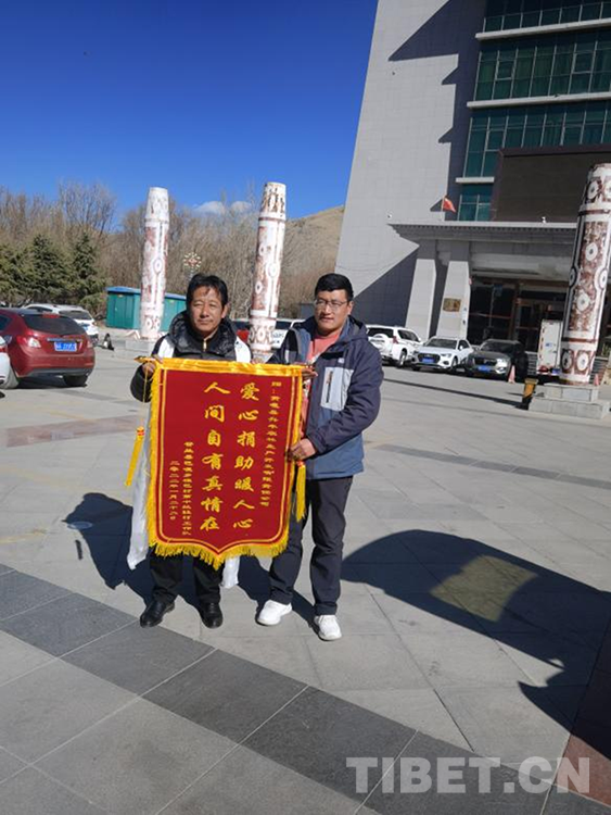 為了表示謝意,雄巴村駐村工作隊成員赴貢嘎縣為興豐農林生產開發有限責任公司,當面道謝并為該公司送上錦旗及該村特產干魚。(中國西藏網 記者/拉姆 圖片由雄巴村駐村工作隊提供)