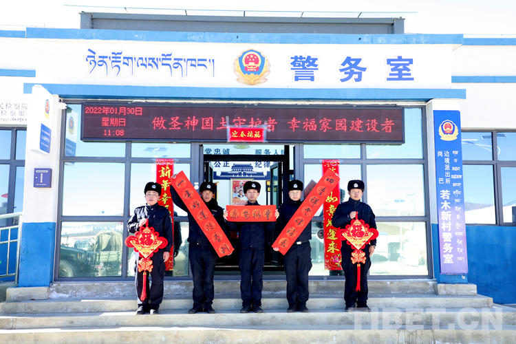 圖為日喀則邊境管理支隊崗巴邊境管理大隊若木新村警務室民警祝福全國人民新春快樂