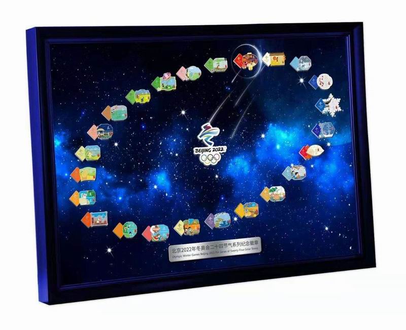 圖為全套“北京2022年冬奧會二十四節氣系列紀念徽章”與專用相框 圖片來源:北京冬奧組委官方網站