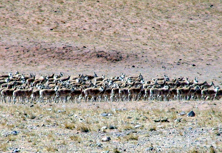 這是羌塘國家級自然保護區核心地帶正在遷徙的雌性藏羚羊(唐召明2006年攝)