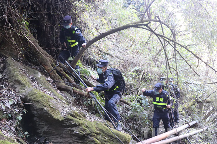“大家注意安全,我走前面,你們跟著我的腳步走,相互之間照應一下,發現情況及時匯報。”對于友誼橋執勤點負責人的尼瑪云旦來講,帶領戰友們巡山踏查是一天中最重要的工作之一。走在隊伍前面的尼瑪云旦用棍棒將枝繁葉茂的樹枝向兩邊拍打,帶領著大家一步一腳印的向上爬。