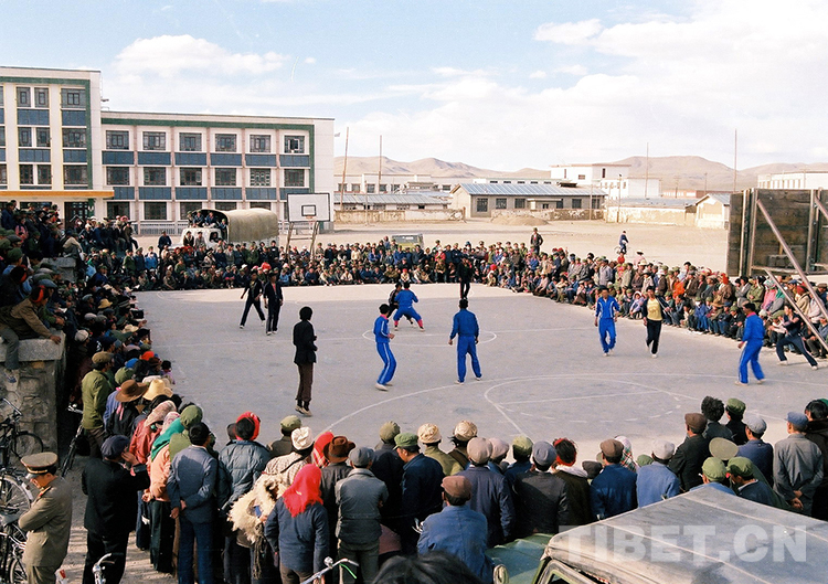 這是在藏北高原首府那曲鎮進行的一場籃球比賽(唐召明1987年攝)