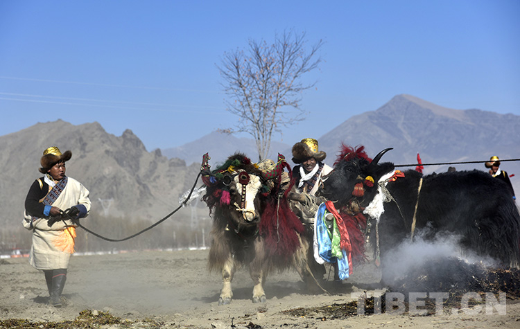 中國西藏網訊 一塊田地的中間,升起白色的桑煙。身著盛裝的人們拿著農具,圍站在田地四周,等待著開犁耕耘。3月16日,西藏自治區拉薩市、山南市等地迎來春耕儀式,農民們追逐春光、辛勤耕耘、期待收獲。