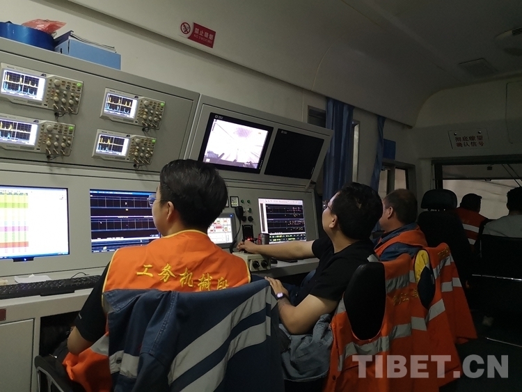 進(jìn)入拉林鐵路前,機組人員對鋼軌探傷車檢測裝置、走行及制動系統(tǒng)進(jìn)行了細(xì)致的檢查,對探傷系統(tǒng)及參數(shù)等進(jìn)行調(diào)試。探傷車前端,兩名司機緊盯前方,負(fù)責(zé)運行;探傷操作臺前,副隊長張全福及4名探傷人員不斷調(diào)整相關(guān)參數(shù),連續(xù)6個小時對檢測過的鋼軌數(shù)據(jù)進(jìn)行認(rèn)真盯控,通過數(shù)據(jù)變化判斷鋼軌是否存在傷損。