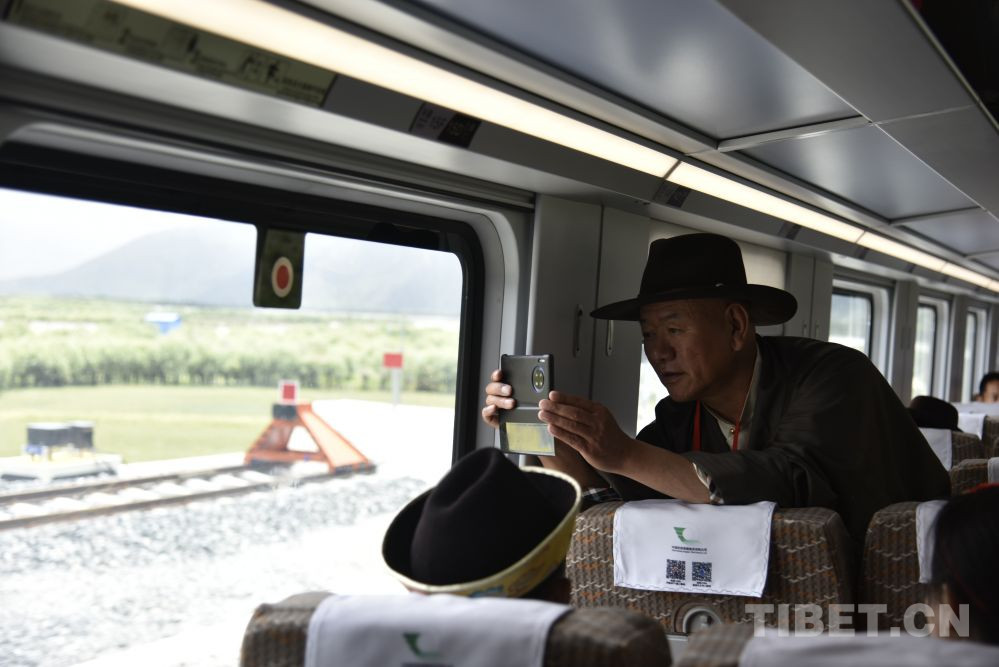 圖為2021年6月25日復(fù)興號高原雙源動力集中動車組即將抵達(dá)西藏林芝站,乘客拍照 攝影:王媛媛