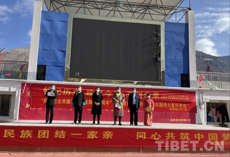 中國西藏網訊 時至三月,春回大地。為深入宣傳好西藏百萬農奴解放的偉大意義,營造心向祖國心向黨、凝心聚力促發展的濃厚氛圍,3月28日,西藏自治區山南市加查縣安繞鎮小學嚴格按照當下疫情防控工作要求,舉行了“紀念西藏百萬農奴解放63周年暨建設美麗幸福西藏共圓偉大復興夢想”慶祝活動,共同祝愿偉大祖國繁榮昌盛,西藏的明天更加美好。