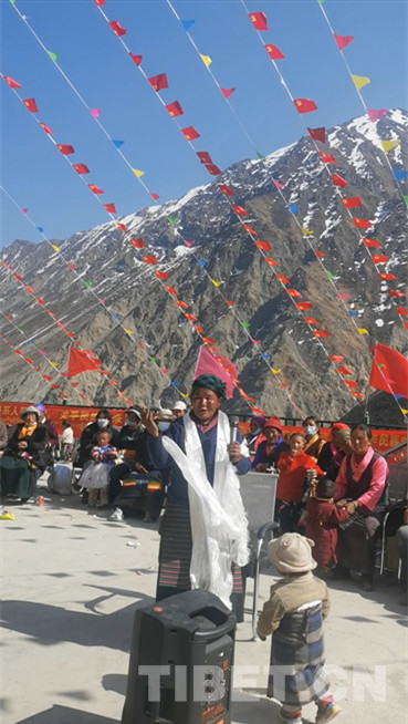 一大早,村民們匯聚在村委會,將一面鮮艷的五星紅旗冉冉升起,國歌在山谷中回蕩。村委會第一書記次仁扎西召集大家進(jìn)行了新舊對比,憶苦思甜,感恩黨的關(guān)懷、感恩國家支持。宣講員白瑪卓嘎主講團(tuán)結(jié)的益處,引導(dǎo)鄰里鄉(xiāng)親團(tuán)結(jié)和睦,自覺守護(hù)中華民族大團(tuán)結(jié)。在陣陣歡呼與掌聲中,汝村文藝演出隊(duì)跳起具有本村特色的鍋莊舞,84歲的曲珍老阿媽唱響《北京的金山上》。有著26年黨齡的老黨員德吉大姐用一曲《再唱山歌給黨聽》表達(dá)不忘黨恩,永遠(yuǎn)跟黨走的決心。