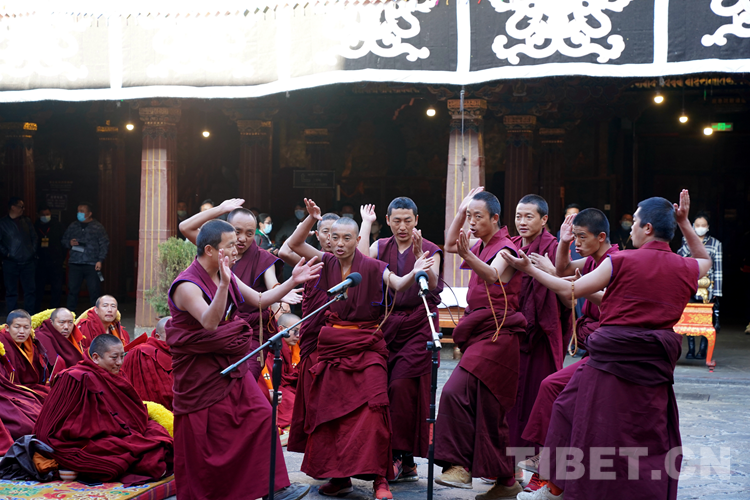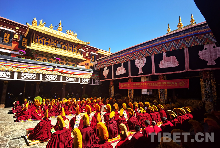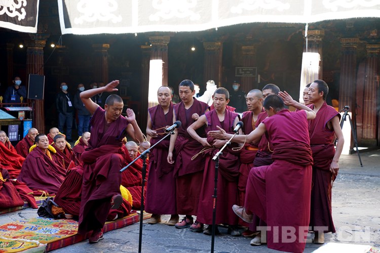 圖為西藏自治區2022年度藏傳佛教學經僧人考核晉升格西拉讓巴學位立宗答辯暨頒證儀式現場 攝影:拉姆