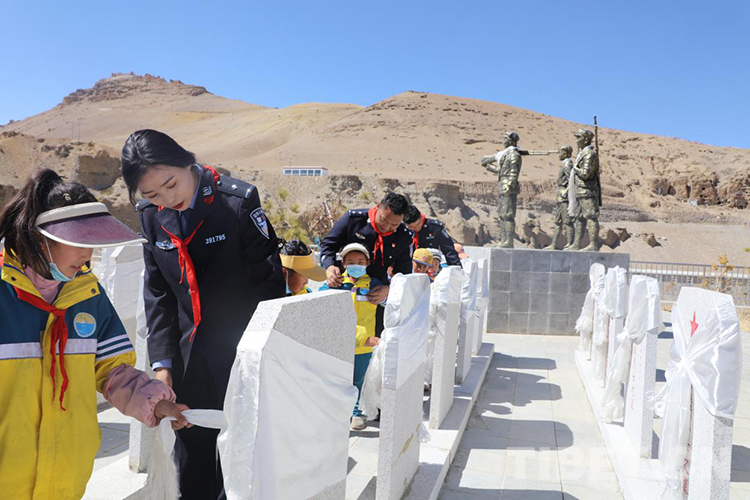 中國西藏網訊 青松翠柏守英烈,春風百花寄哀思。在清明節來臨之際,為傳承英烈遺志,弘揚英烈精神,4月2日,西藏普蘭出入境邊防檢查站民警與普蘭縣九年一貫制學校少先隊員們一起來到普蘭縣烈士陵園開展“清明祭英烈”活動。