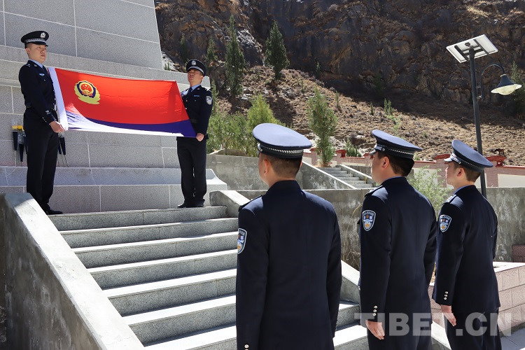 圖為臥龍邊境派出所組織民警向革命烈士默哀