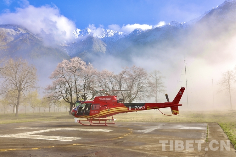 中國西藏網訊 云遮霧繞的早晨,青山如黛,桃花正盛。國網通航公司SG1151直升機機組的王磊卻沒時間欣賞這如畫的美景,一早便和同事們準備今天的航巡作業。