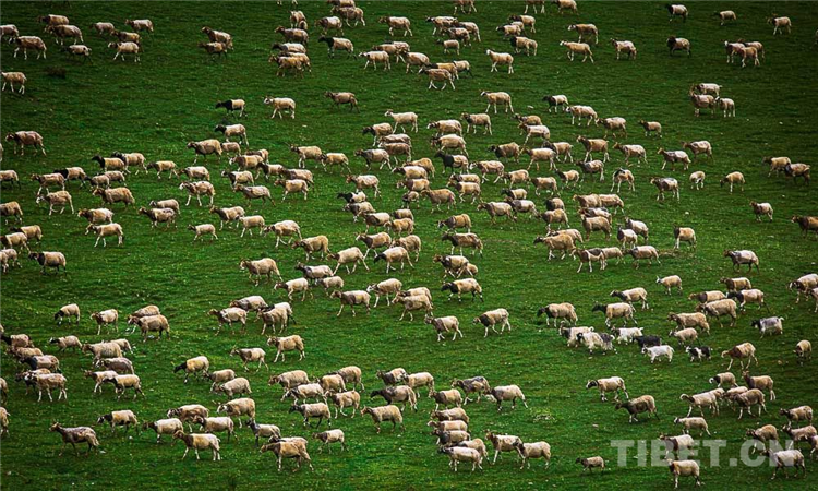 貢覺縣境內山坡上的“阿旺綿羊”,其因體型較大、肉質肥美、吃過不易上火而著名。攝影:趙耀