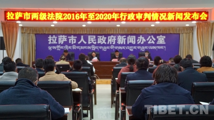 圖為拉薩市兩級法院2016年至2020年度行政審判情況新聞發(fā)布會現(xiàn)場 攝影:王媛媛