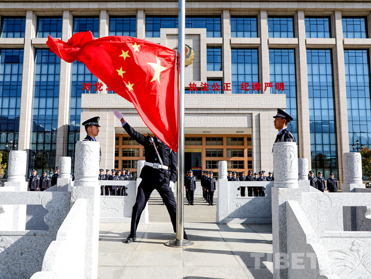 在林芝支隊機關大樓前,鮮艷的五星紅旗在雄壯的國歌聲中冉冉升起,機關全體民警警容嚴整、精神飽滿,用標準的敬禮向國旗致敬,向偉大的祖國和勞動人民致敬。
