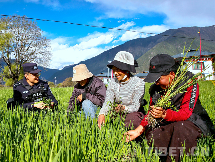 為切身體會勞動人民的艱辛和不易,在節日期間,曾擔任過農場種植員的林芝邊境管理支隊魯霞邊境派出所副所長李智勇,利用自身優勢,向正在田間除草勞作的群眾了解小麥種植情況,交流耕種經驗,并向勞作的群眾致以節日祝福。