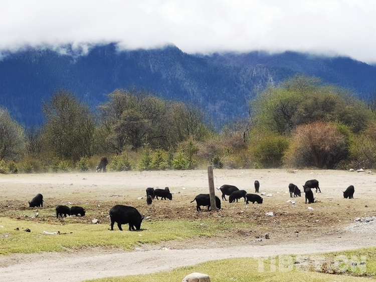 中國西藏網訊 5月,杰青那拉嘎布雪山上,縹緲的云霧從山間蔓延而下,環繞著巴松錯湖。沿著湖畔,高低錯落的森林繁茂,草場遼闊,濕地廣袤,四處覓食的藏香豬,甩著尾巴,散落在錯高村的田間密林。