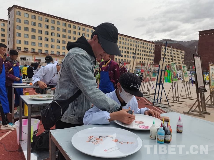 圖為烹飪專業教師李建國指導來自丁青縣的洛松德青制作果醬畫