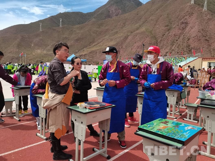 圖為扎西格勒老師教授唐卡漆畫專業同學作畫