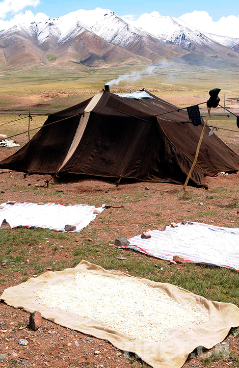 這是雙湖縣嘎措鄉(xiāng)一帳篷前所攤曬的奶渣(唐召明2022年5月31日攝)