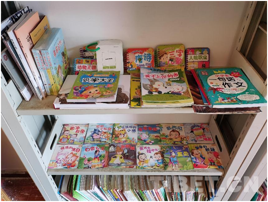 圖為重慶、浙江的愛心人士為阿日村的孩子們捐贈的圖書