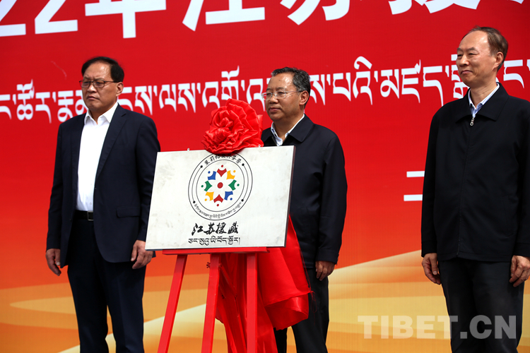 圖為現場發布江蘇援藏項目標識 攝影:王佳豪