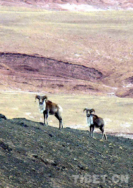 這是棲息生活在羌塘國家級自然保護區的國家保護動物盤羊(唐召明2009年8月7日攝)
