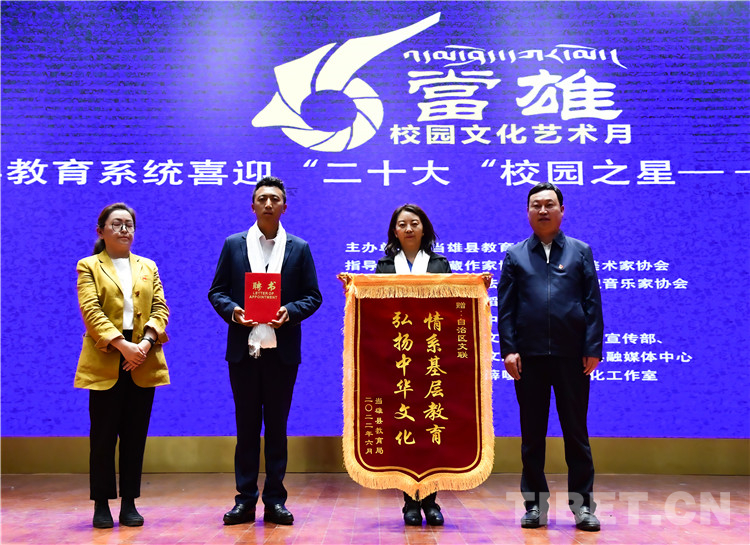 中國西藏網(wǎng)訊 近日,由西藏自治區(qū)拉薩市當雄縣教體局主辦的全縣教育系統(tǒng)喜迎“二十大”——首屆校園文化藝術月活動頒獎典禮暨總結大會舉行。據(jù)悉,本次活動自5月啟動以來,相關單位大力協(xié)作,吸引了1000多名學生參與其中。通過從當雄縣各個學校報送的朗誦、歌舞、寫作、繪畫、羊拐、“吾多”等大量文藝作品中進行篩選,最終評選出147個獨具特色的作品。本次活動營造了積極向上、文明和諧的良好文化氛圍。(中國西藏網(wǎng) 記者/拉姆 由活動主辦方供稿)